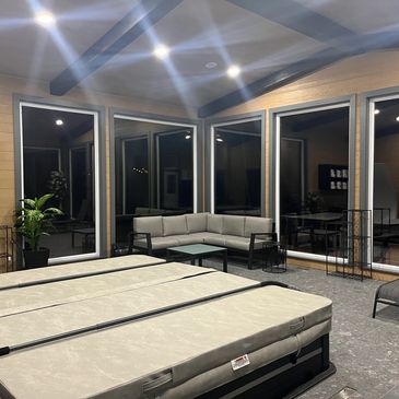 Relaxez dans un spa luxueux Hydropool situé à quelques pas de votre chalet. La Maison du Spa est partagée pour les clients de Chalets Chaleur seulement, comme à l'hôtel! chalet booking